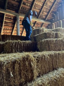 Adolphsen’s Farm had some good hay and straw bales available this summer. Combine that with Jim getting the conveyor belt working in the barn, and we were able to put away an ample supply for winter — a chore that required plenty of teamwork.